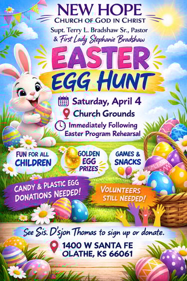 Pastor Terry Bradshaw is the founding Pastor of New Hope COGIC. He has served faithfully has our Pastor since 1995. He has been married to Missionary Stephanie Bradshaw for 43 years. They have two adult children and two grandchildren.